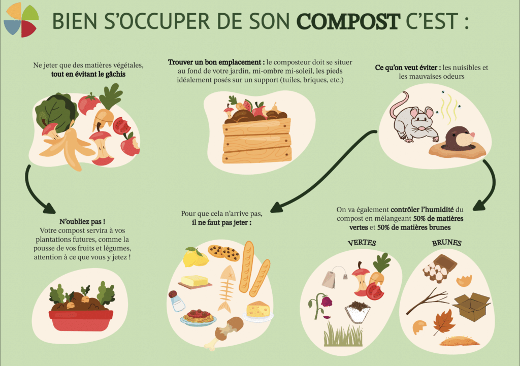 Comme vous le savez déjà, le compost servira d’engrais pour vos fleurs et/ou votre potager. Les déchets qui le composent seront donc mélangés à la terre et donneront les nouveaux fruits et légumes que vous consommerez ; n’oubliez pas d’être vigilants sur ce que vous y jetterez.
